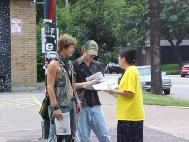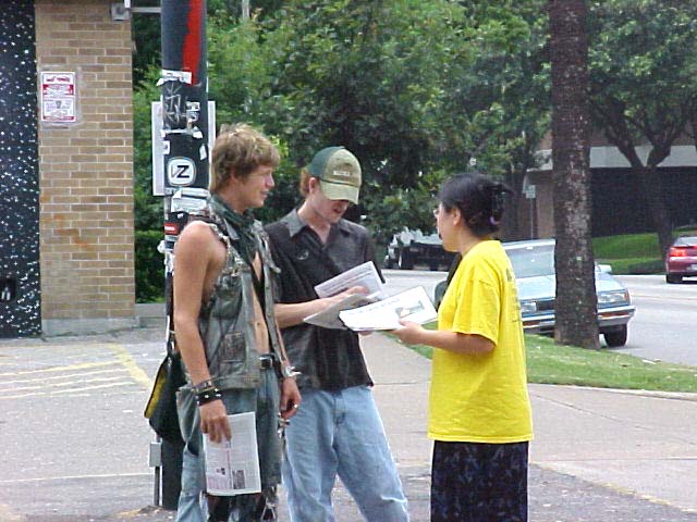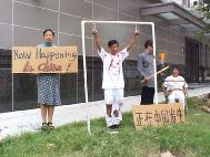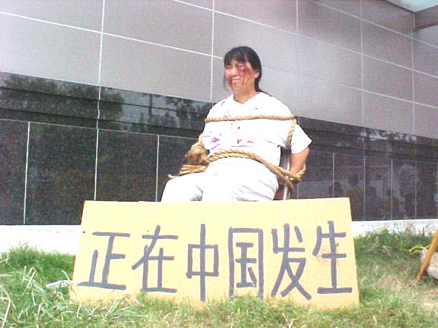 2004年7月20日中午十二点至一点半,休士顿法轮功学员在中领馆前举办“酷刑展”,向民众揭露江氏集团在中国大陆迫害法轮功的残酷手段,揭露江氏集团的丑恶面目。在中领馆前,两位法轮功学员以真人模拟受酷刑方式展示“酷刑”,展板写着中英文“正在中国发生”,这些引起了路人的极大关注,“酷刑展”使路过的行人急于想知道为什么中国有酷刑?当他们了解到,中国以惨无人道的酷刑迫害一群信仰“真、善、忍”的好人时,使每一位路人非常震惊,他们索取有关真象资料。