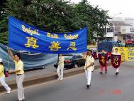 印尼法轮功学员参加古都井里汶市的步行活动(图)