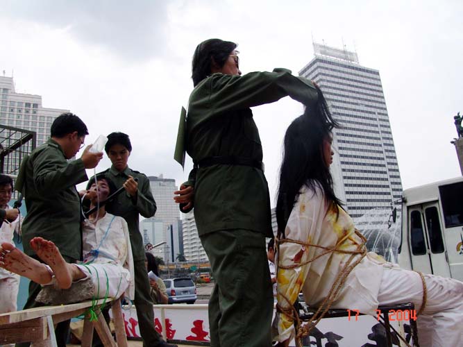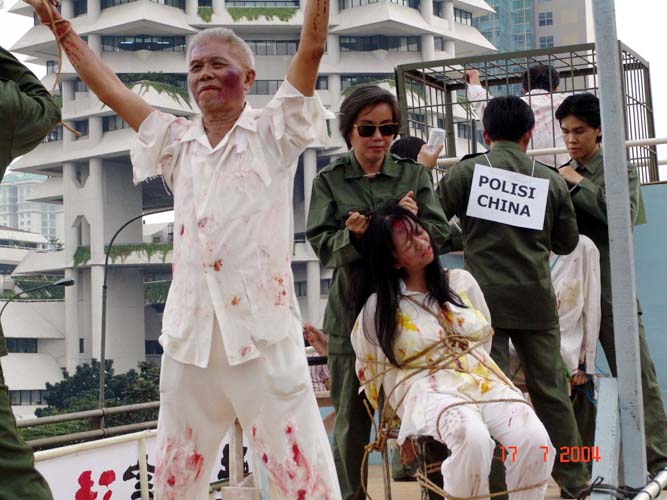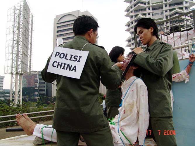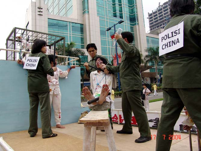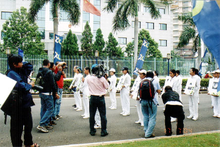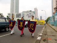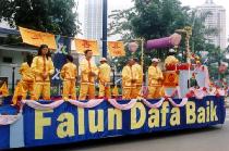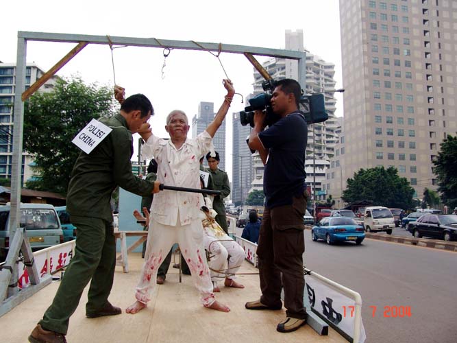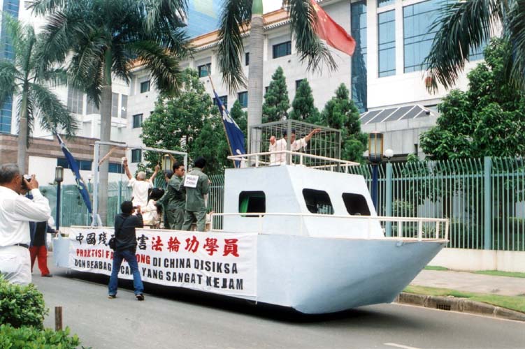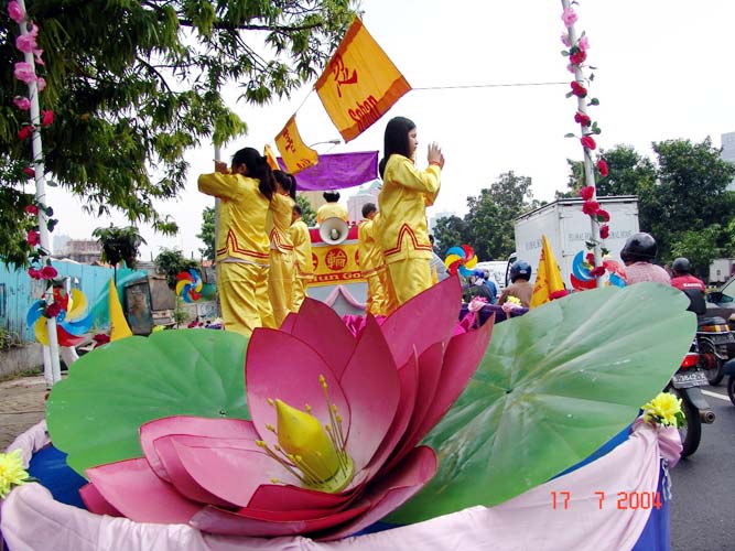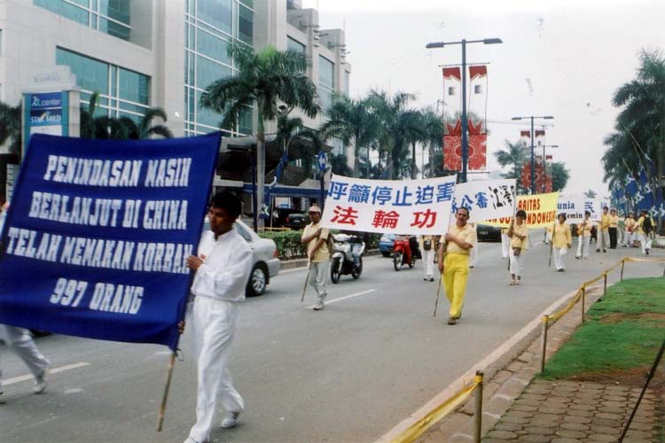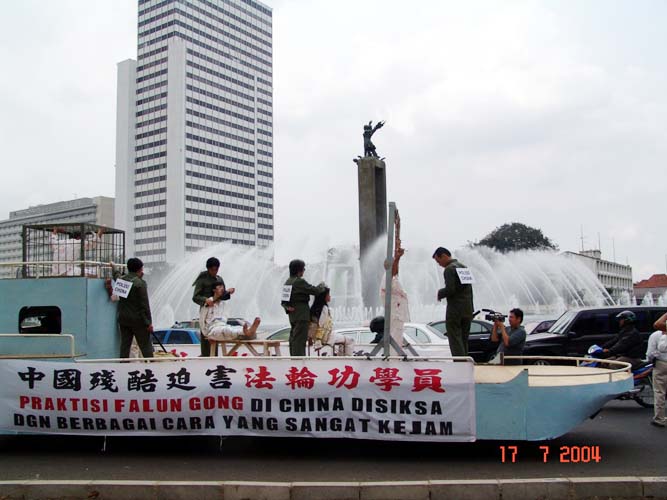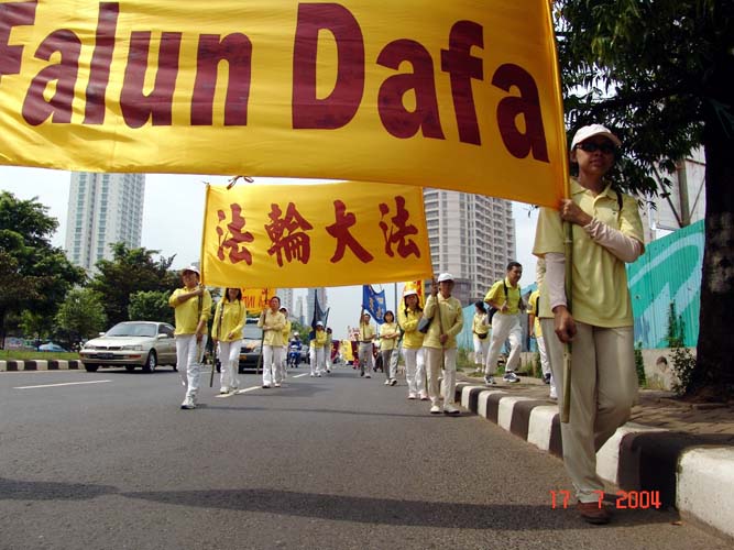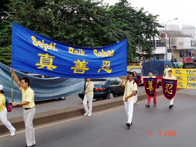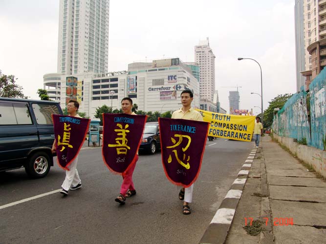 【明慧网2004年7月21日】在中国大陆镇压法轮功5周年之际,印尼法轮功佛学会举办了以游行方式的和平请愿活动,为揭露江氏集团残酷