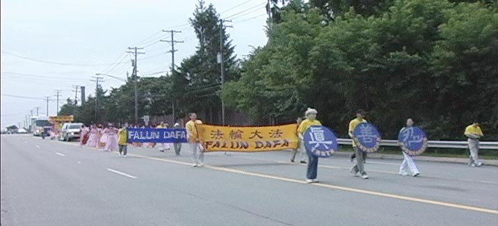 芳明顿坡市在2000年就给予大法褒奖。州议员艾尔铎先生,更是全力支持大法。本次活动开始也有些曲折,学员们原本报名参加真人化妆酷刑展及游行两个活动,主办单位中途突然以真人化妆酷刑展在充满欢愉的节庆展示太残忍为由,婉拒弟子参展已报名的摊位。学员们后连续两天,在密西根首府兰莘市和加拿大温莎市成功举办真人化妆酷刑展,在准备游行和酷刑展的同时,学员们努力向多方组织者讲清真象,主办单位终于首肯保留摊位,允许图片展、功法演示及讲清真象。