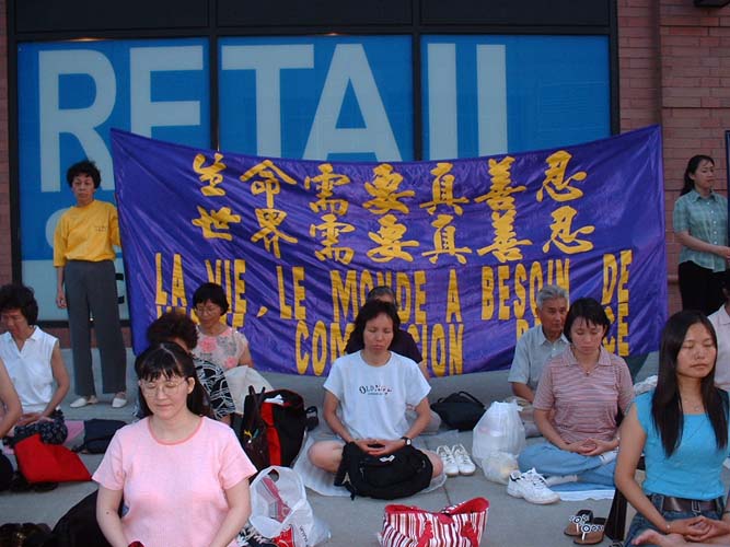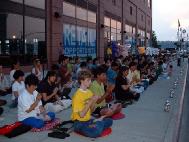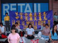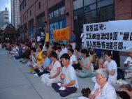 【明慧网2004年7月21日】(明慧记者唐风纽约报道)2004年7月20日晚,大纽约地区的法轮功学员来到中领馆前烛光守夜,中英文横幅“世界需要真善忍”,“法轮大法好”“强烈谴责江氏集团雇凶杀人的恐怖主义行径”分外醒目。五年的中,在中国大陆至少已有1010名法轮功学员因不放弃信仰被迫害致死。今天大家来到中领馆前烛光守夜,悼念因信仰“真、善、忍”而献出生命的大陆法轮功学员。中领馆作为中国政府在海外的窗口,五年来在江氏集团对法轮功的迫害中为虎作伥,煽动社区华人对法轮功的仇恨,完全歪曲了领馆的作用。今天大家来到中领馆前烛光守夜,打出英文横幅“中领馆:停止迫害法轮功”。五年来,面对非法的迫害,无理的镇压,法轮功学员一直一如既往的恪守“真善忍”,以人所不能为的高尚承受向所有人传播着真理的信息。今天大家来到中领馆前烛光守夜,再次向世人展示了大法弟子慈悲祥和的风貌和坚忍不屈的精神。