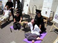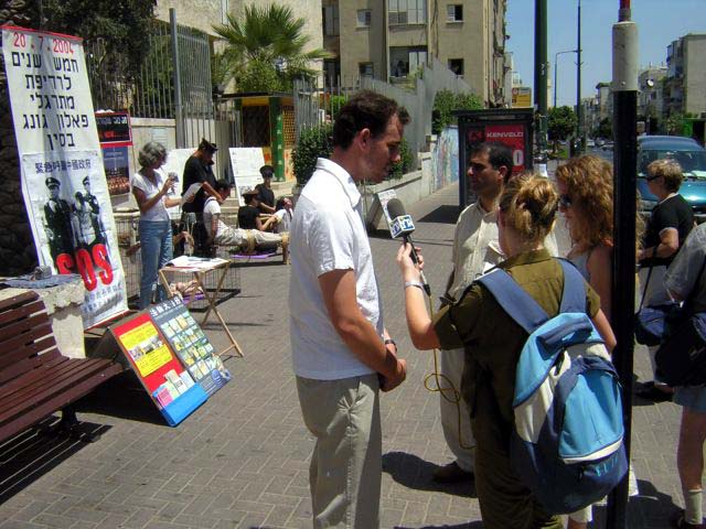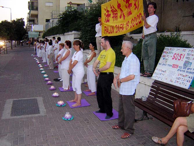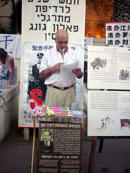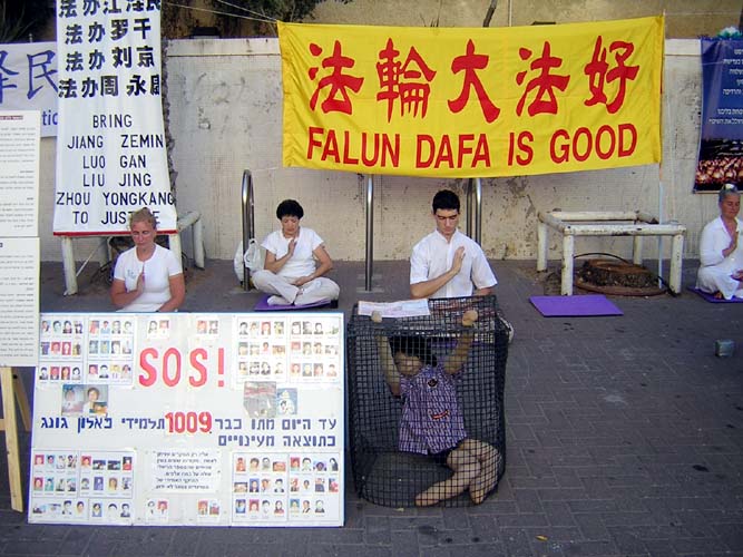 法轮功整整5年了。以色列法轮功学员在特拉维夫市,中国大使馆对面呼吁停止迫害并告诉世人真象。