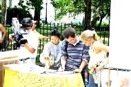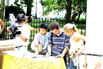 ![]() 签名支持法轮功 | ![]() 行人观看法轮功真象展板 | ![]() 新闻发布会现场 |