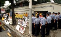 接下来,学员们又到2公里外的中国领事馆前举行活动。领事馆位于市中心,是办理有关中国领事事务的诸多中国人必经之地。因此这里也就成了学员们经常举行讲真象活动的场所。