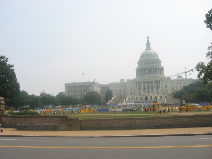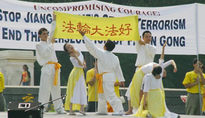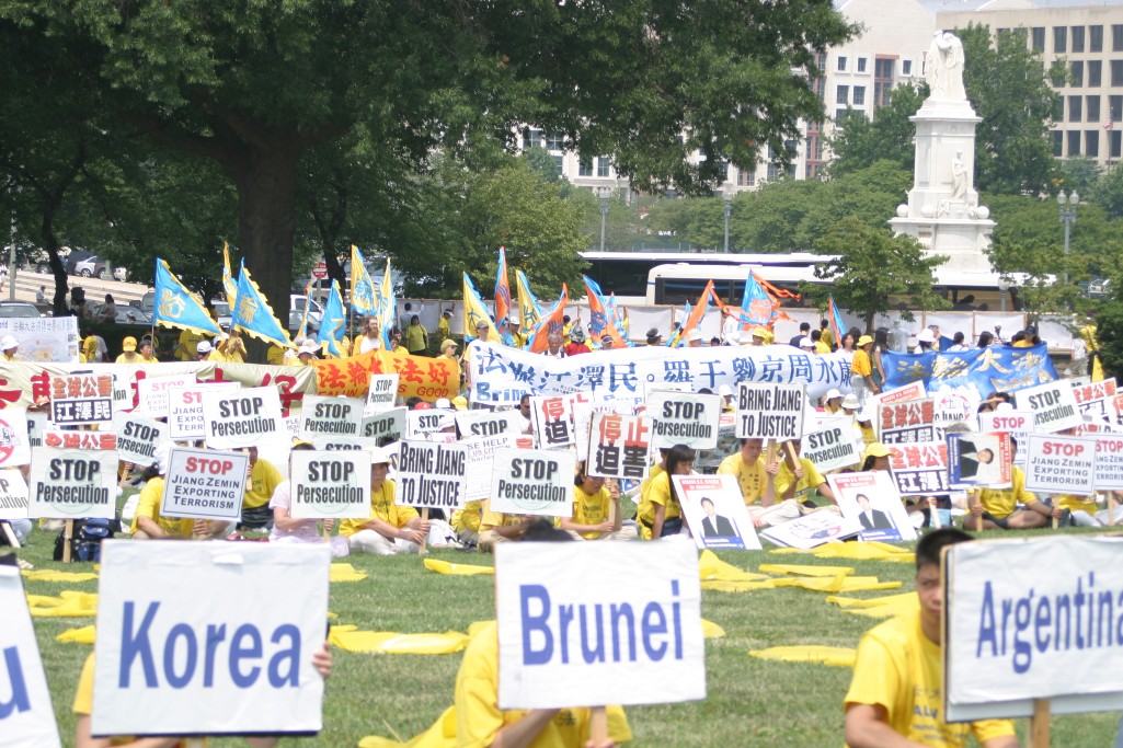 7月22日中午,来自世界各地的法轮功学员及其支持者在国会山庄集会。主题是:“永不屈服的勇气”,呼吁制止中国江氏集团国家恐怖主义行为,并呼吁停止对法轮功修炼者的镇压和虐杀。