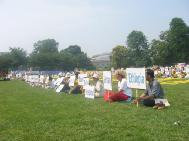 ![]() 法轮功学员DC使馆前炼功 | ![]() 法轮功学员DC使馆前莲花“正法”队形 |