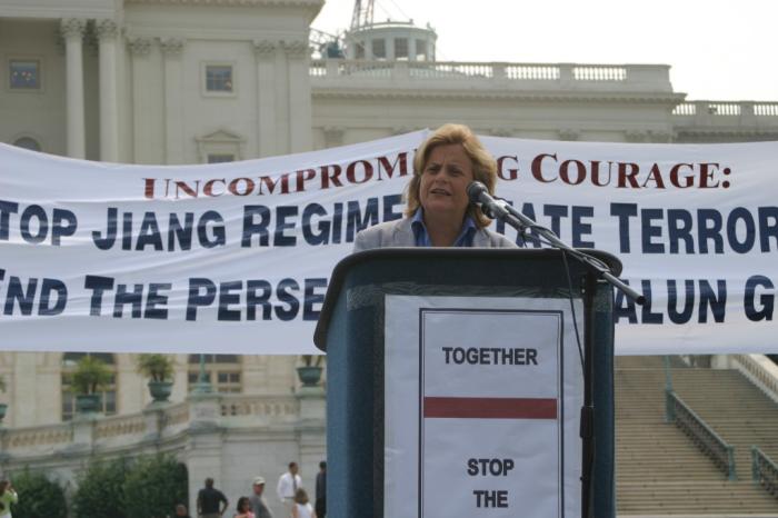 佛罗里达众议员Ileana Ros-Lehtinen女士在发言中说:“我们的和平历程是艰难的,但是你们已经清楚的展现了你们的坚强不屈、锲而不舍和你们的内在力量---那种从你们的信仰中获得的内在力量……今天我们再次汇集在这里继续抵制(江氏集团在)全世界范围的对法轮功学员的迫害和虐杀……我保证继续为法轮功而努力,直到对他们的迫害停止……”