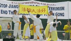 法轮功学员孙先生说:“我来到这里,就是为了呼吁世界各国政府、团体和善良的人们和我们一起停止在中国大陆对法轮功的镇压和迫害,制止江氏集团恐怖主义在国外的扩张和对法轮功学员的各种打击和骚扰。”