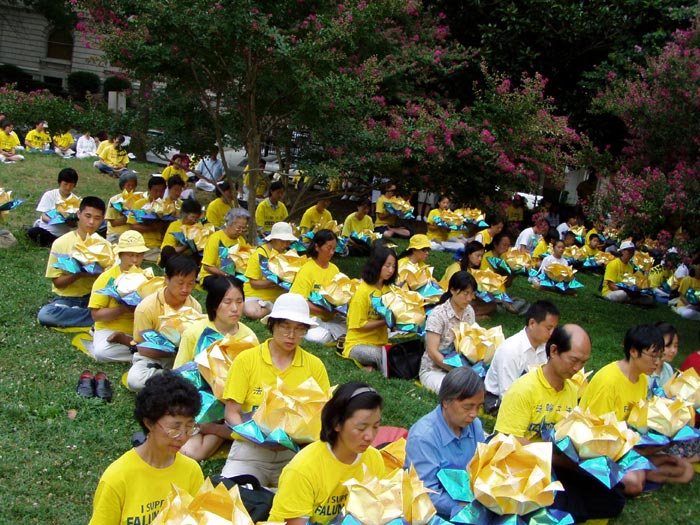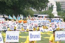 每年的7月20日期间,来自世界各国的法轮功学员以及支持法轮功的人们都会在美国首都华盛顿举行集会、游行、烛光悼念等系列活动反对迫害,呼吁全世界正义善良的人们,一起来帮助停止这场对善良民众的迫害。