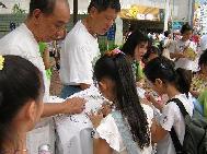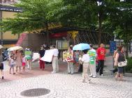 一位女士带着一群刚上完音乐课的小女孩经过,在了解我们的诉求后,主动在布条上签名,并说之前已经了解了法轮功受迫害的真象,她很认同我们的征签活动。她带的小朋友们也在这位女士的同意下,纷纷签下了她们的名字,并问了很多问题。如:为什么要杀人?好残忍哦!我们向小朋友解释法轮功在中国遭受镇压的事,并告诉她们这些是由中国江氏集团发起的恐怖行为,只要有更多人站出来,并把这些事情曝光,他们就不敢再做了。