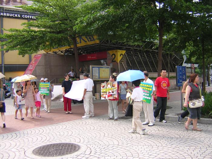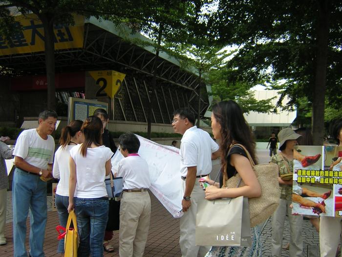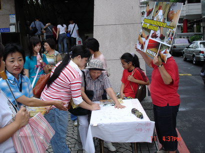 有位妈妈带着二个儿子,看到展板上照片后十分震惊,一直说怎么会这样,竟然在光天化日之下行凶,这不是公然的挑衅吗?我们能够为你们做什么吗?小孩也说:我也要签。还有司机因为看不到展板内容特意将车子开到路旁,看完了解真象后才肯离去。有一位男士说:过几天要到中国大陆,我要把真实情况告诉中国大陆的朋友,让他们知道江氏集团的所做所为,竟然到海外行凶。还有一位小姐说我气不过我一定要签……