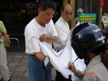 ![]() 中山捷运站征签 | ![]() 民众了解真象后签下他们的名字 |
