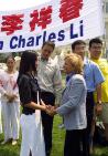 国会议员Ros-Lehtinen.女士问候符泳青。泳青的未婚夫,美国公民李祥春在中国已因信仰法轮功被非法监禁一年半。
