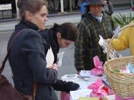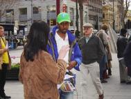 很多行人在了解了这一切后表示了他们对迫害的厌恶和憎恨,并问:“我能为你们做些什么?”学员们让他们跟更多的人讲这场迫害及其邪恶本质,呼吁世上有良知的人们都来反对这场迫害,目地是让这场迫害早日停止,还清白于信守“真善忍”的法轮功学员,让这一洪扬世界的大法重返中华大地。