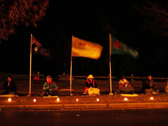 【明慧网2004年7月26日】二零零四年七月二十四日星期六晚上,澳洲部分大法弟子不顾南半球的严寒,聚集在堪培拉中国大使馆前烛光悼念在中国大陆被