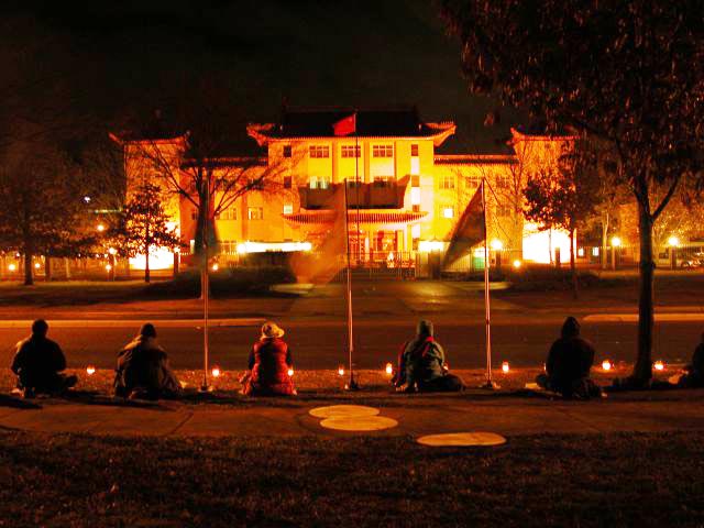 英国法轮功学员中使(领)馆前烛光悼念同修(图)