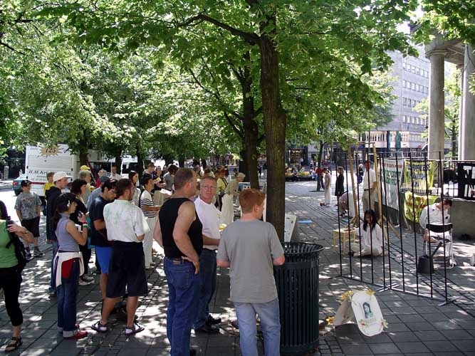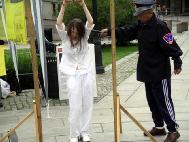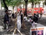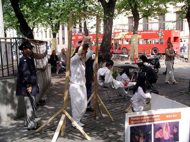 【明慧网2004年7月26日】二零零四年七月二十三日和二十四日,挪威法轮功学员和来自瑞典及丹麦的法轮功学员连续两天分别在国会前和市中心举行真人模拟酷刑展。