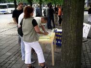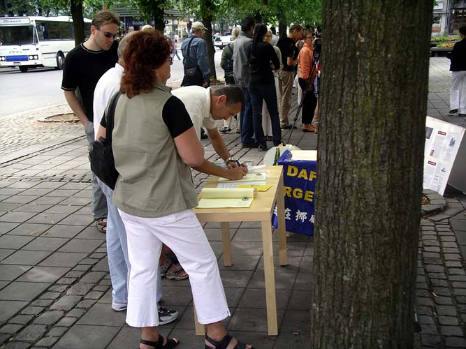 消息说:这个星期是中国政府(江氏集团)公开宣布禁止法轮功的五周年,法轮功是一种静坐运动,她有一亿多的炼习者,在全世界的大多数地方包括挪威举行了纪念活动。