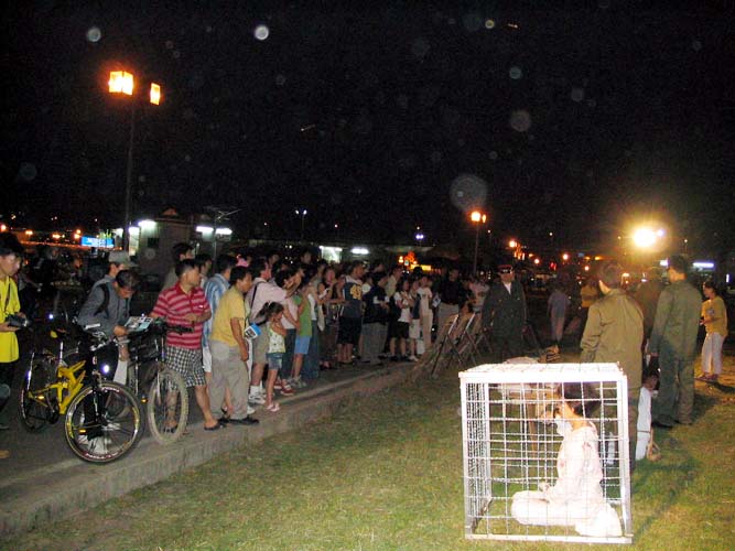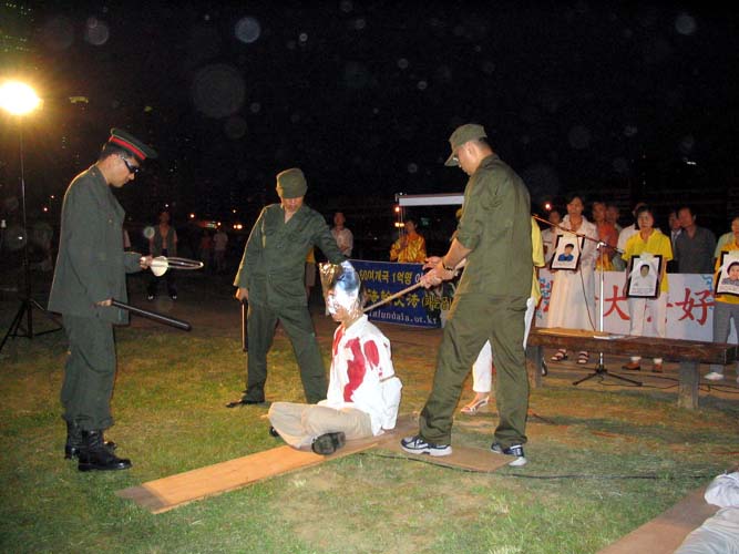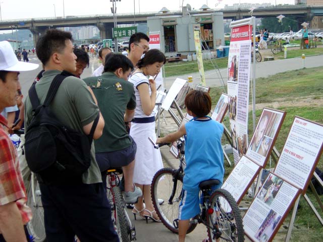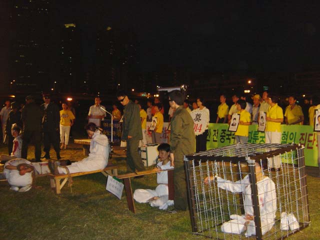 下午5点,学员们在江边事先摆好了真象图片,让来往的人们了解正在中国发生的这场对“真善忍”的残酷迫害。法轮功学员举行了真人酷刑展,向世人揭露江氏流氓集团在中国对法轮功学员灭绝人性的镇压和迫害,世人都对在中国发生的迫害感到异常震惊和愤慨。