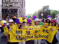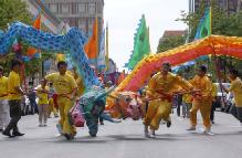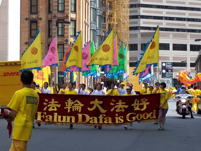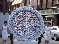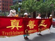 ![]() 真、善、忍横幅 | ![]() 游行队伍 |