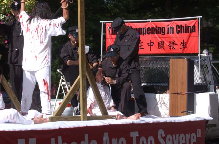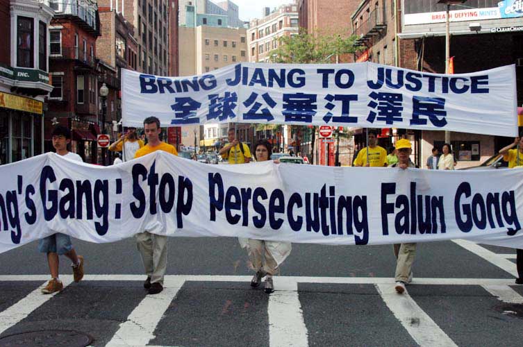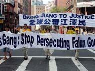当“全球公审江泽民”的横幅经过时,有人说,江××就是坏,上台后,干了太多的坏事,应该审它。