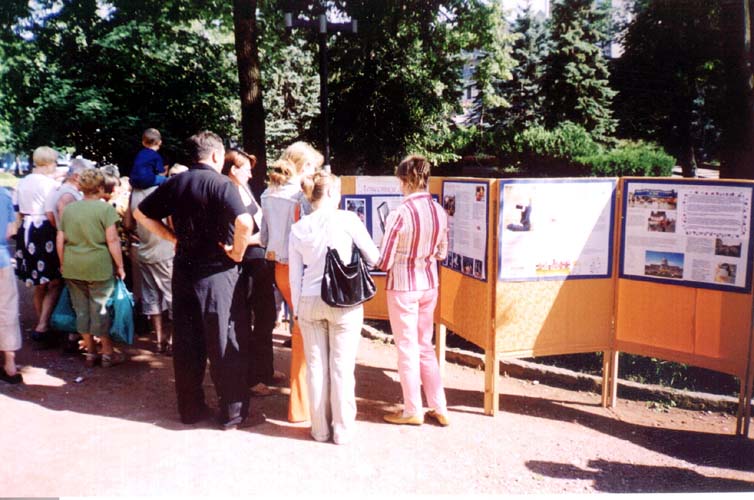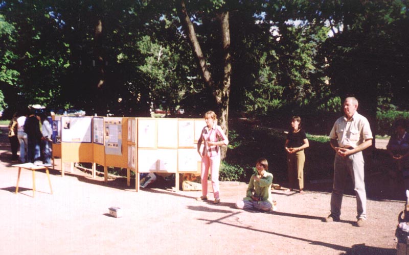 为了让更多人们了解这场迫害的真象,唤醒人们内心深处的善良,俄罗斯五山城市的法轮功学员于2004年7月22日和7月24日两天在市内中心公园里连续举行了洪法活动。