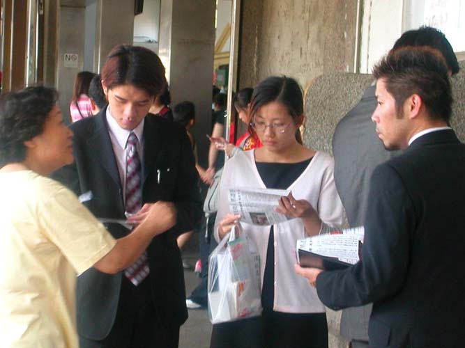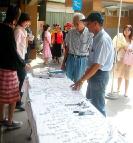 了解了法轮功真象来签名的人络绎不绝。每个名字的背后都有一个故事,许多人从原本的冷漠不关心,在经由法轮功学员的详细介绍和解说后,纷纷签名支持正义,制止迫害,有的更叫他的朋友都过来签。支持正义的呼声不分年龄大小和种族,有家长带着小朋友一同签名,更有外国朋友在知道这样的事情后从大老远的地方跑来签名,车站的各个角落不时可看到人们在看法轮功的简介资料,法轮功学员也不时穿梭在各个角落,就是希望不落下任何人。