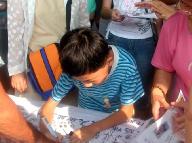 ![]() 不落下一个有缘人 | ![]() 签名声援 | ![]() 写满签名的横幅 |