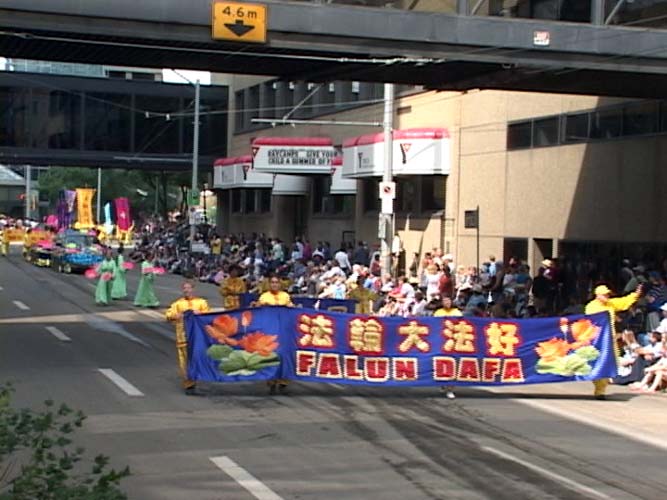 法轮功学员的游行队伍所到之处受到了人们热烈的掌声欢迎,很多人大声的说:“法轮大法”,“法轮大法好”。法轮功学员以“把法轮大法的美好带给人们”为主题的游行取得了圆满的成功。