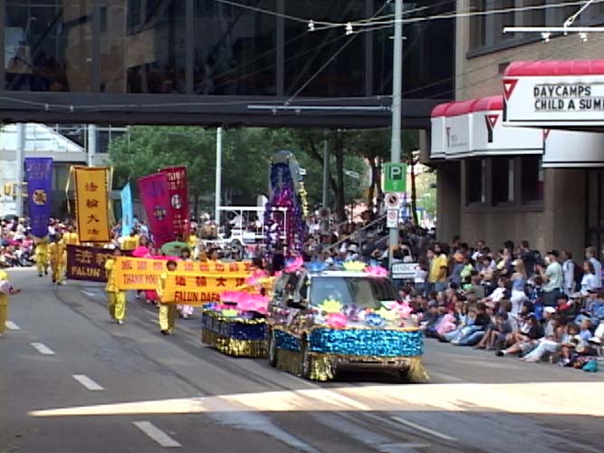 在随后的两天时间里面,学员们齐心协力,终于不仅完成了游行的准备,而且在游行中做到了完美!游行结束后,Edmonton Journal在对淘金节游行的专题报道中,特别提到了法轮功学员的游行队伍,盛赞法轮功学员带给了Edmonton市民法轮大法的美好,并说法轮大法学员的花车非常漂亮,认为如果主办单位没有在最后时刻改变他们的错误决定,那将是今年淘金节游行的一大遗憾。他们也为他们的报纸在这件事情中所起到的正面作用而感到自豪。