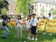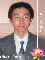 ![]() 我们是一队未成年人,为了停止在中国对法轮功的镇压,将从多伦多骑自行车到华盛顿特区。 | ![]() 我已修炼法轮大法八年了,我从中受益无穷。 | ![]() 我想把真象告诉一切在我周围的人们,让他们知道地球的令一边在发生着什么。 |