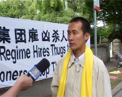 赵明还说:“其实我以前在国内的时候,这样的事情也见的挺多的了。在劳教所和监狱里面,警察非常广泛的利用监狱里的黑社会和流氓去折磨法轮功学员、监视法轮功学员。我在团河劳教所有一次被十个监狱里的犯人殴打,当时就是里面警察指使里面的一个黑社会头子,让他指使这些犯人这样干的。开枪射击法轮功学员这样的事情在国内也发生很多起了,有好几个地区的警察都透露出说有这样的密令,看到法轮功学员贴传单了,允许开枪射击。有的地区的警察把法轮功学员射伤之后,还酷刑逼供,逼着他们供认袭警,这样来摆脱责任。”
