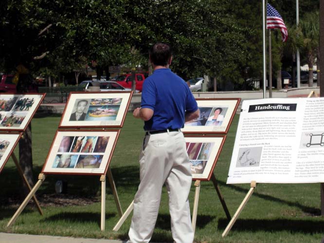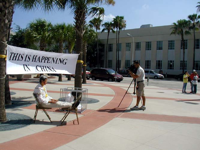 乔-切勒拉法院广场位于休斯伯格县政府(Hillsborough County)大楼的对面。许多县政府工作人员和行人停下来向学员们询问,观看展板,签请愿信,并索要更多的信息。他们中许多人对中国大陆学员们的遭遇表示同情,并对学员们在残酷迫害下不放弃自己的信仰表示敬佩。
