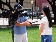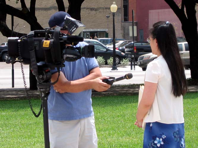 ![]() 法轮功学员接受记者的采访 | ![]() 新闻发布会现场 |