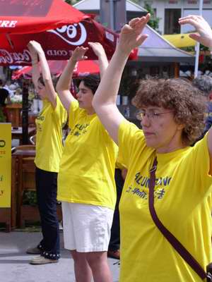 一些学员在布尔诺市主要的公园-鲁赞克伊(Luzanky)公园每周四次教功,他们遇到许多来学功的人们,人数不同寻常。他们向人们介绍了何处可以找到炼功点。很令人鼓舞的是我们看到五个学生也加入了学功的行列,并和学员们一起在大街上打坐。