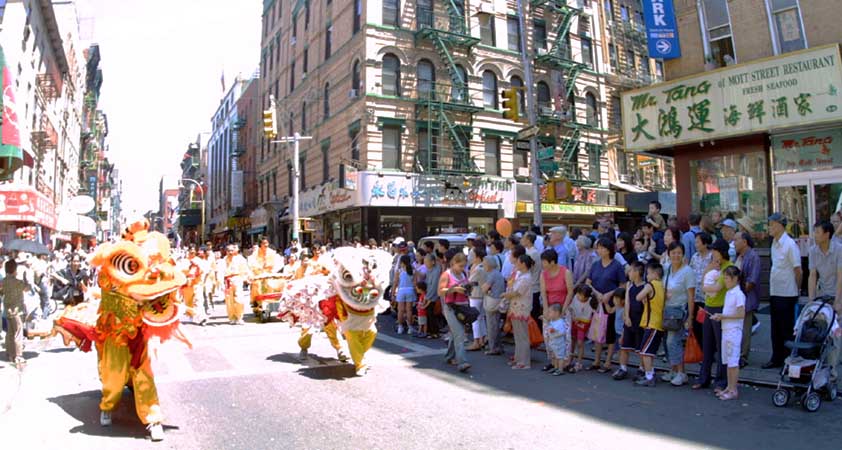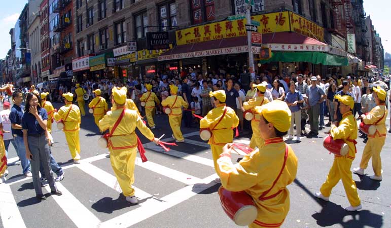 法轮功参加纽约华埠美国独立日大游行 社区欢迎(图) 【明慧网】