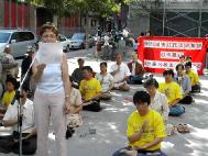 法轮功学员在集会中说:江氏集团为了迫害法轮功,不惜实施国家恐怖主义,并把这种行径延伸至海外,这不仅是对法轮功学员的迫害,也是在威胁全世界;如果国际社会对这种施加于追求真善忍的法轮功学员身上的恐怖行为坐视不管,必然邪恶横行,人人生活在恐怖之中。