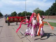![]() 法轮功学员的游行队伍 | ![]() 女学员表演舞蹈 |