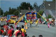 法轮功学员已经是第六年受邀请参加列治文市的7.1游行。列治文市是大温地区华裔大量聚居的城市,游行吸引了众多来自中港台的移民。为了更好的向观众展示法轮大法的美好,此次游行中一改以前的队列安排,分为三个方阵。第一个方阵主题为“法轮功是什么”。首先由崭新的中英文横幅“法轮功”开道,紧接着是中英文“真善忍”横幅,装饰一新的花车紧随其后,车头挂着以绣球装饰的金匾英文“法轮大法”。车身两侧有两个大型展板,上书中英文“法轮大法洪传60多个国家祛病健身修心养性义务教功”,并注有联系电话。花车上有转动的彩色法轮和《转法轮》书的模型,两位“仙女”演示打手印和静功。花车上不停的重复播放着国语、粤语和英语的解说词,让所有的观众都能听到法轮大法的基本情况。其后9名学员组成炼功队伍行進中演示着动功。