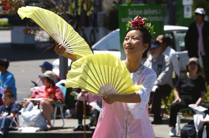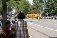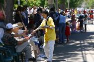 法轮功学员打着“法轮大法好”,“真、善、忍”,“用善对抗仇恨”等横幅,并为观众演示五套功法和表演优美的扇子舞。当队伍经过,很多民众热烈鼓掌,不停欢呼“法轮功!”“法轮功!”很多民众抢着索取资料。有的询问更多法轮功真象。