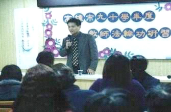 郑励君科长(督学)谈到当时法轮功学员第一次到教育局跟他介绍法轮功时,他当时就认识到法轮功是正的、可以给教师带来健康和对学生的爱心付出,他说:“我说法轮功是什么?请到办公室来,至少我听得懂别人讲的理念…,如果回应的好,我要协助推动,让法轮功教师研习营一期一期的办下去。”