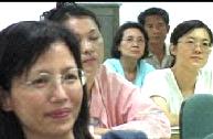 刘明里小姐:来这边研习,我居然发现有这么好的修炼法!就是说一边可以锻练身体,另外还可以修身养性,真的是太好了!性命双修。然后我觉得非常感动。