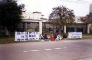 秘鲁学员中领馆前发正念 抗议江罗集团雇凶杀人(图)