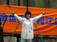 一位来自加拿大的中年女士说,她尽管知道这场迫害的存在,但亲眼目睹迫害的实景还是第一回。她在现场拍摄了许多演示现场的照片。她问学员她回到加拿大以后,可以为此做些什么。学员告诉她说,希望她尽可能的把这场迫害告诉更多的善良人们,她连声说“我会的,我会的。”