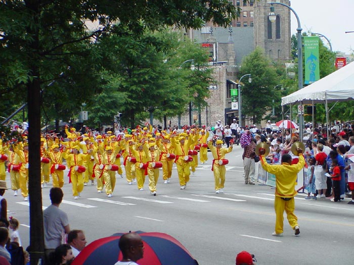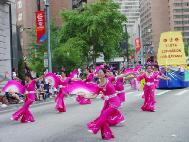 法轮功学员组成的腰鼓队,英姿飒爽,举手投足之间,体现出中原文化的古朴和华夏文明的生命力。