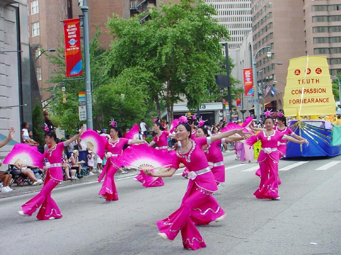对于耳濡目染了重金属音乐和现代派劲舞的西方观众来说,法轮功学员表演的扇子舞,清新自然,让现代观众领略到东方古典美的内涵。