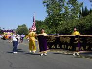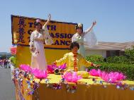 游行队伍正式出发前,游行组织者進行了花车评比,法轮功学员装饰的花车深受好评并获得二等奖。学员们在花车上的功法表演、扇子舞和腰鼓表演受到沿街观众的热烈欢迎,学员们的队伍所到之处一路掌声不断。沿途观众并纷纷积极索要大法简介材料。