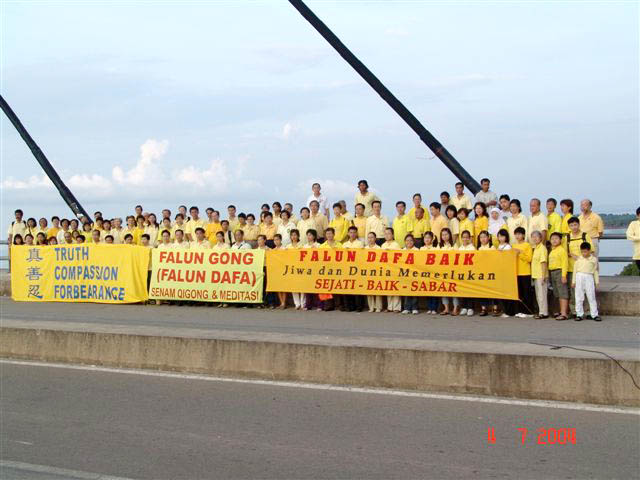 ![]() 烛光守夜 | ![]() 在峇淡大桥上炼功 | ![]() 合影 |