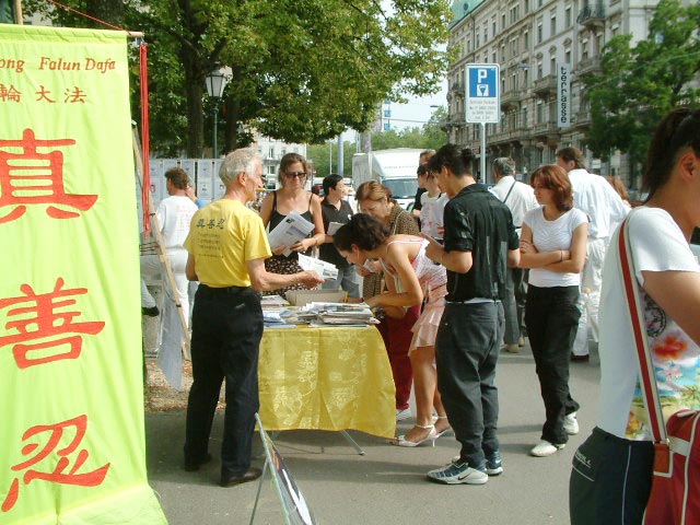 【明慧网2004年8月10日】2004年7月31日,瑞士数十名法轮功学员冒着夏日酷暑,在瑞士第一大城市苏黎世举行反
