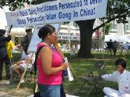 在华盛顿DC作高级精算师的法轮功学员葛女士说,举办这次酷刑展是为了向西方的媒体和路人讲清法轮功被迫害的真象,同时也希望西方的媒体能给予这场还在中国发生的残酷群体灭绝罪行给予应有的关注和报导。